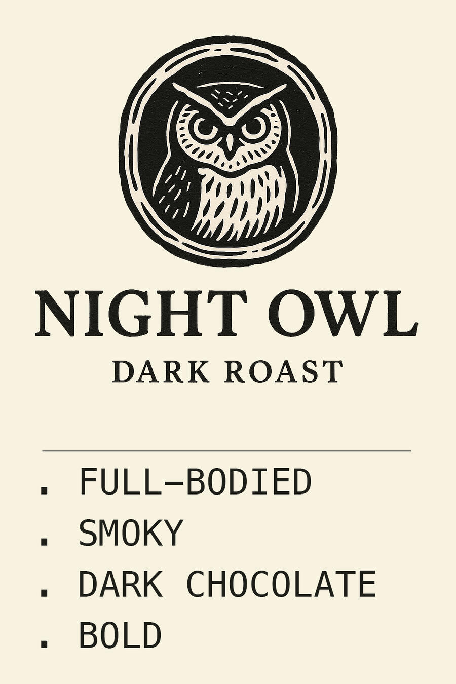 Roasted in the heart of Northern Indianapolis, our "Night Owl" Dark Roast delivers the dark, bold, smoky flavors you crave with rich notes of dark chocolate and a smooth, lingering finish. Perfect for those late-nights and early mornings.A Small Batch Coffee Roasted for the Restless and the Wise